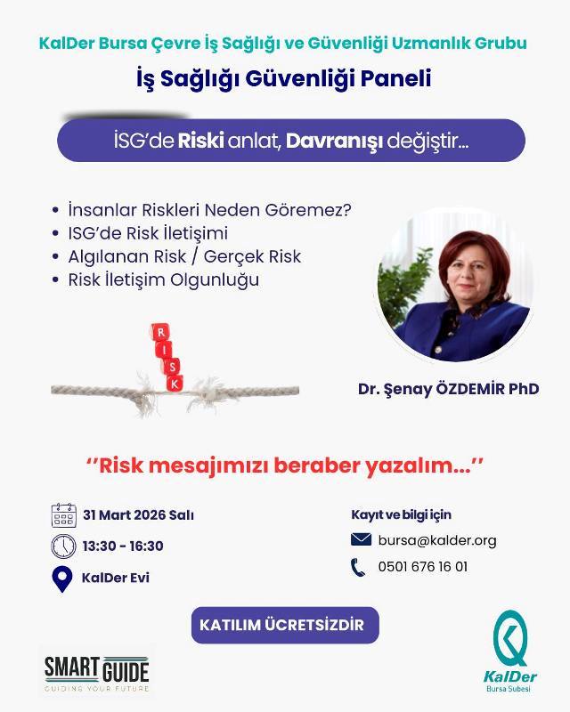 KalDer Bursa Çevre İş Sağlığı ve Güvenliği Uzmanlık Grubumuzun düzenlediği ‘İSG’de Riski Anlat Davranışı Değiştir’ konulu panelimize davetlisiniz. Etkinliğe katılım ücretsiz olup linkten kayıt olabilirsiniz.